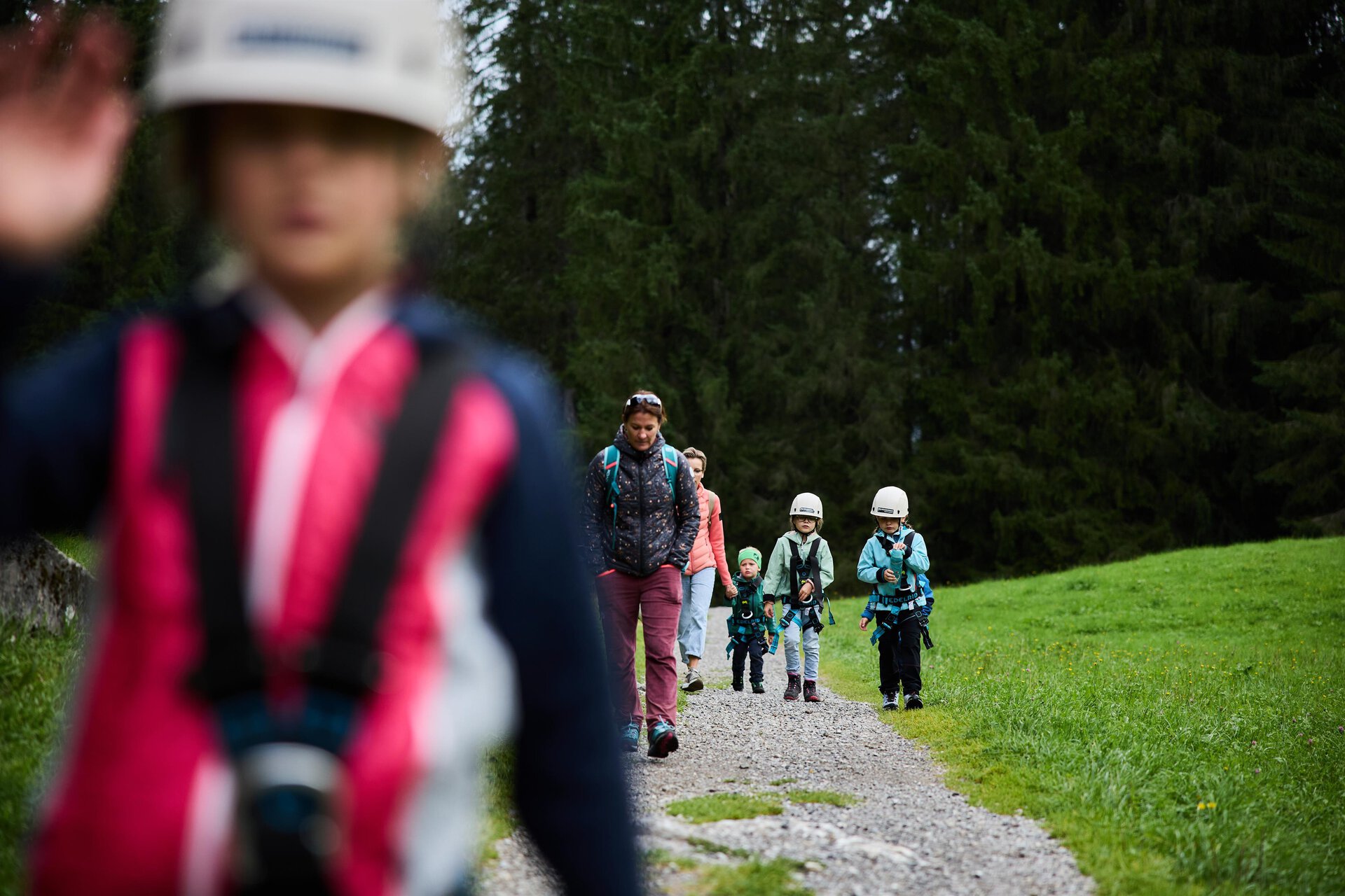 Das Abenteuer fordert Dich beim Klettern im Klettergarten, beim Bachüberqueren auf der Seilbrücke, am Flying Fox oder beim Abseilen aus schwindelerregenden 40 Metern Höhe.