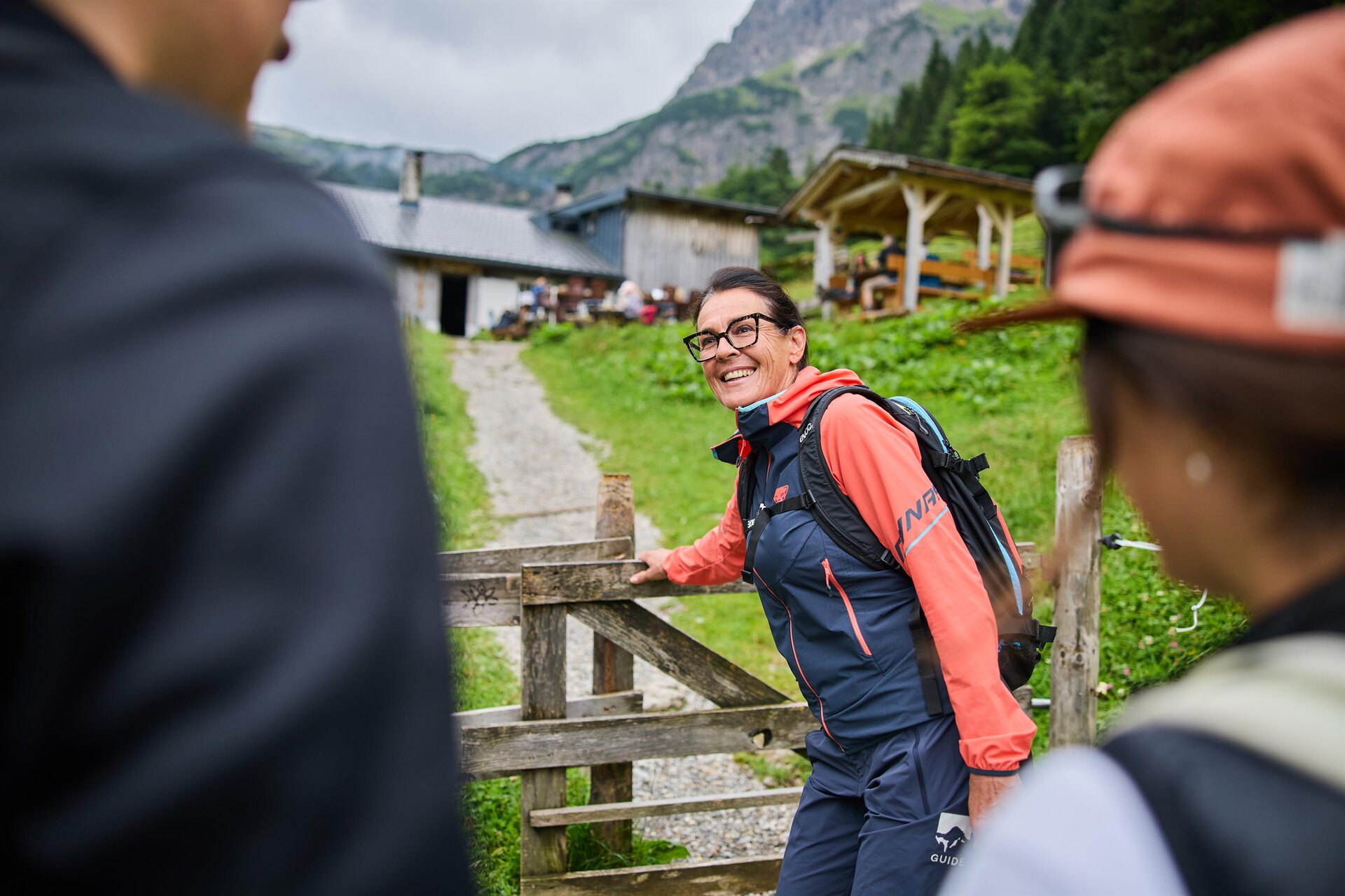 Erfahre, wie hier jahrzehntelang Käse hergestellt wurde und probiere im Anschluss die Käse-Spezialitäten aus Bio-Milch. Gestärkt trittst du den Rückweg inmitten der beeindruckenden Bergkulisse von Elfer, Zwölfer und Kleinem Widderstein an.