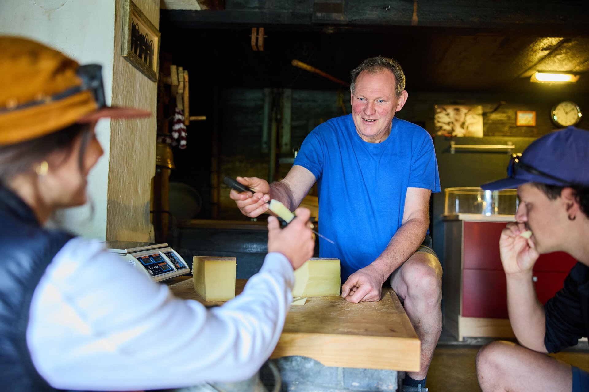 Bernhard Heim - Landwirt, Hüttenwirt und Senn – und sein Team führen Sie nach einer gemütlichen Wanderung in die urige Sennküche der Bernhard‘s Gemstelalp und geben Ihnen spannende Einblicke in die ehemalige Bergkäseherstellung.