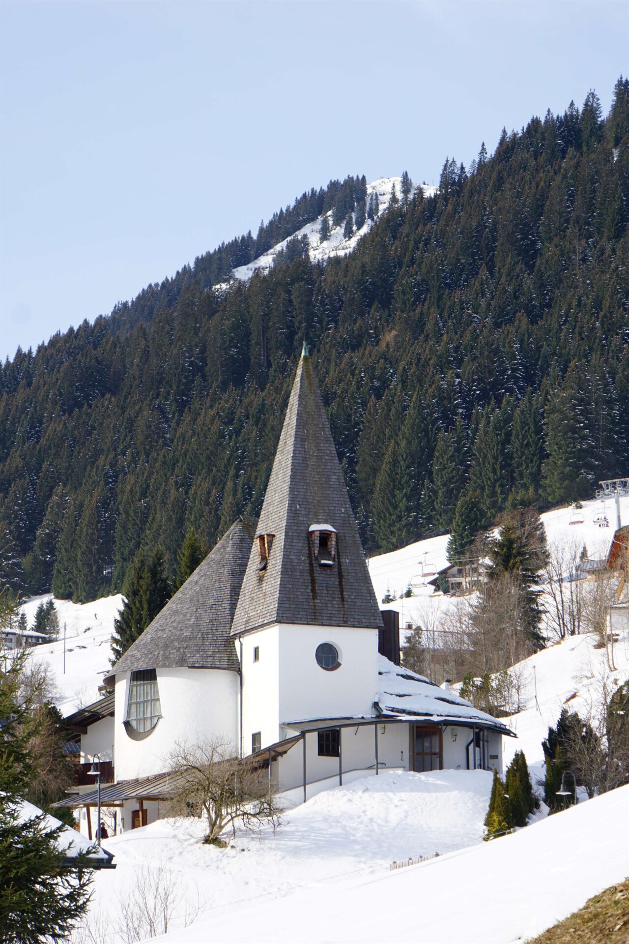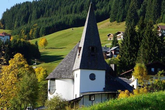 Die evangelische Kreuzkirche befindet sich in Hirschegg "Am Berg".