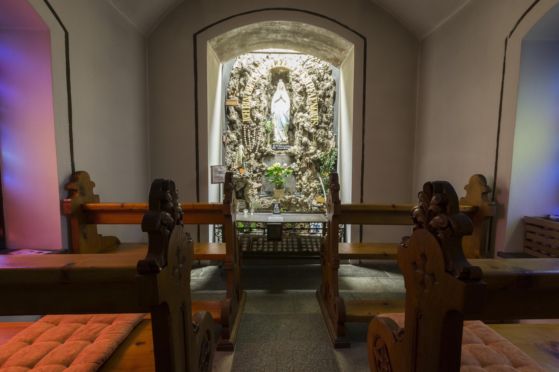 Die Lourdeskapelle befindet sich direkt hinter der Pfarrkirche in Mittelberg.