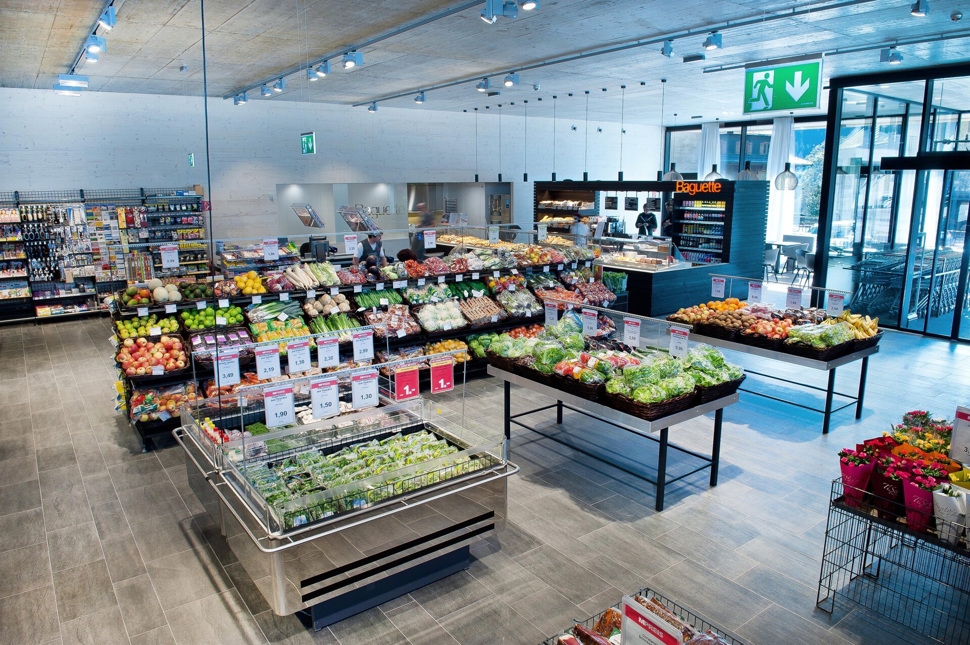 Reichhaltige Auswahl an Lebensmitteln, viele regionale Produkte aus Österreich; Supermarkt ist im Ortszentrum von Mittelberg.