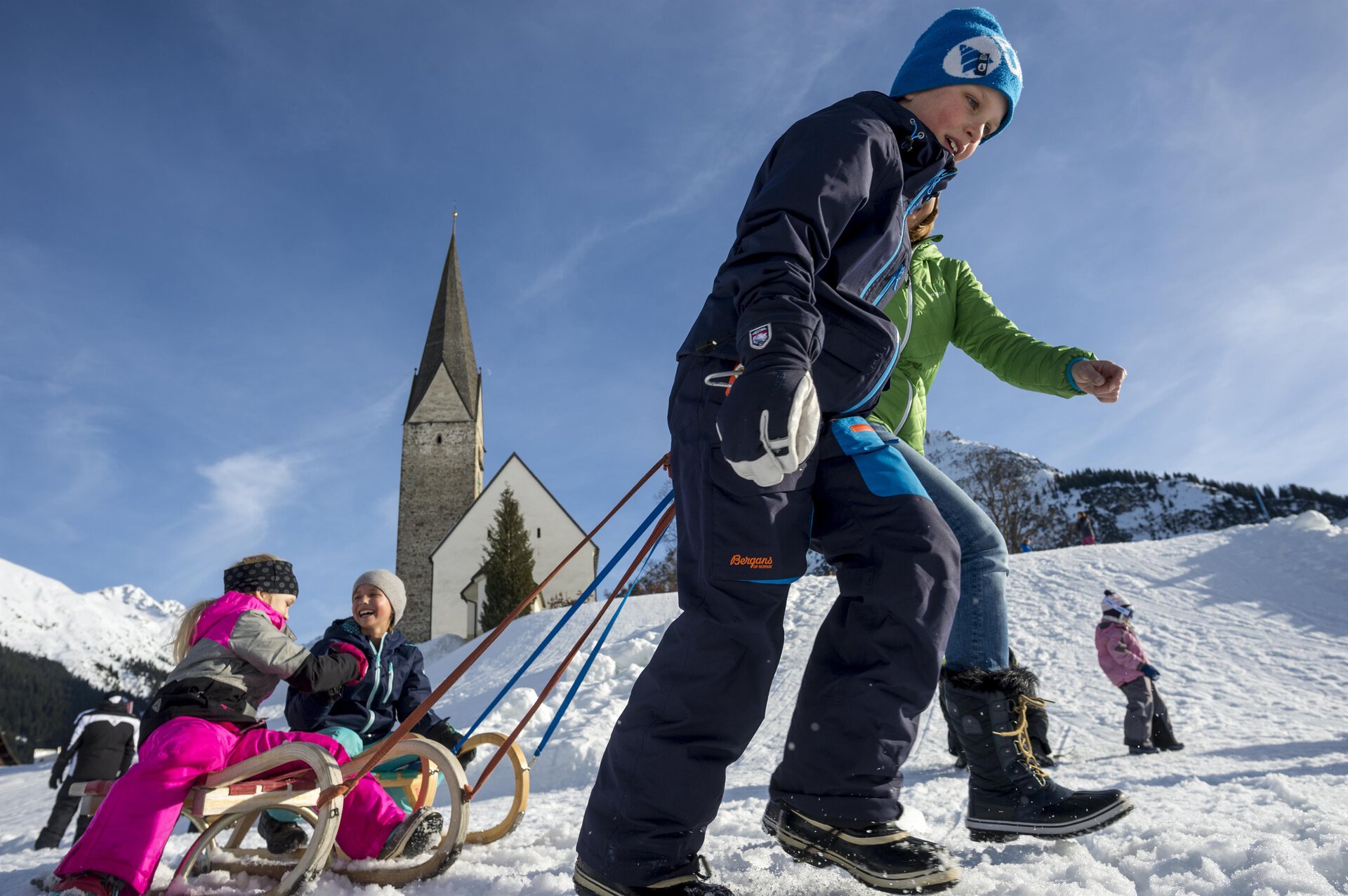 Rodelspaß für Jung und Alt mit Wellenbahn und Steilkurven. Zugang über die Schule, hinter der Kirche. Verleih im Lifthüsle von Zipfelbobs und Schlitten.