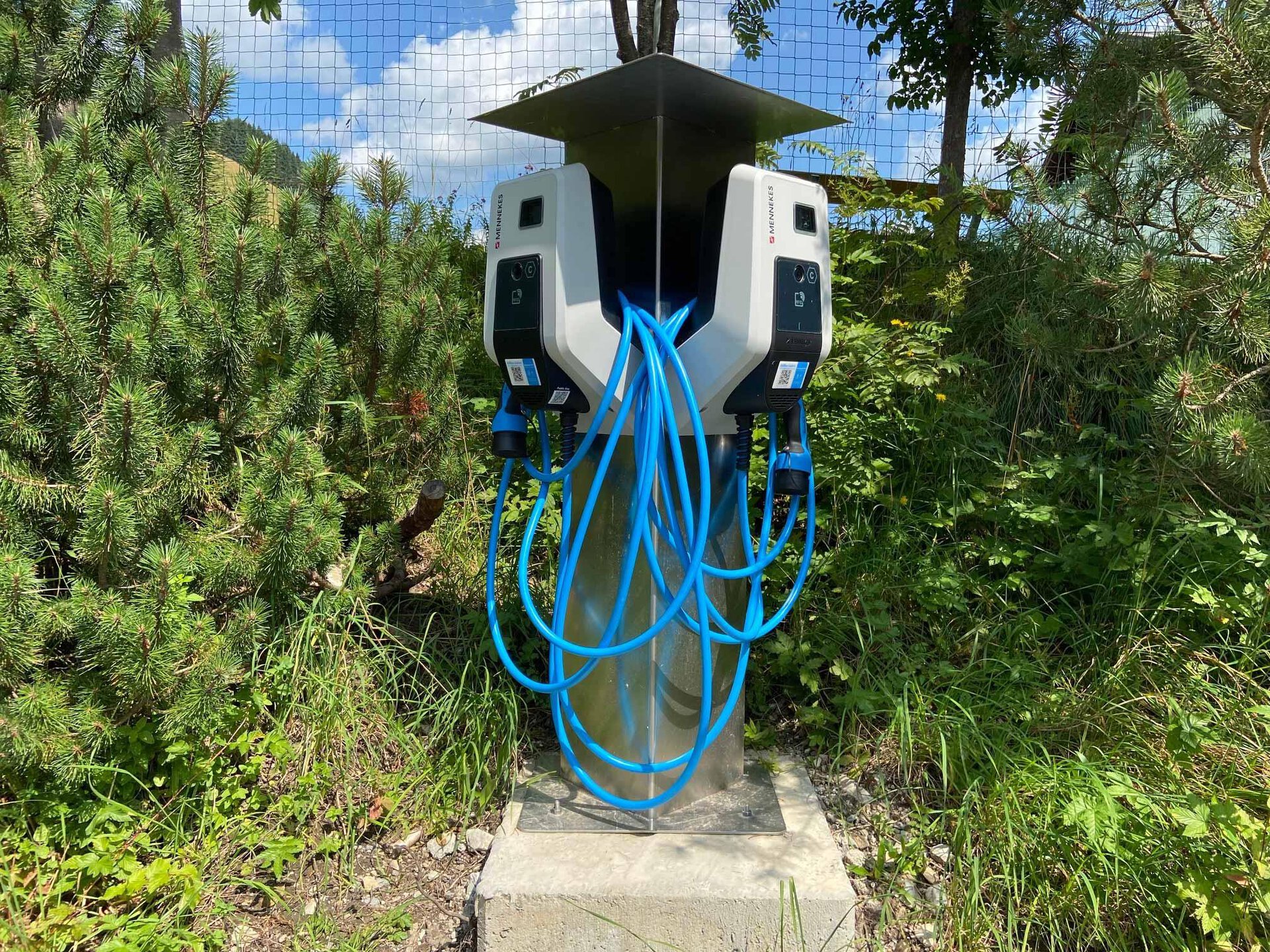Auf dem Parkplatz der Walmendingerhornbahn befinden sich zwei öffentliche Ladesäulen für E-Fahrzeuge.