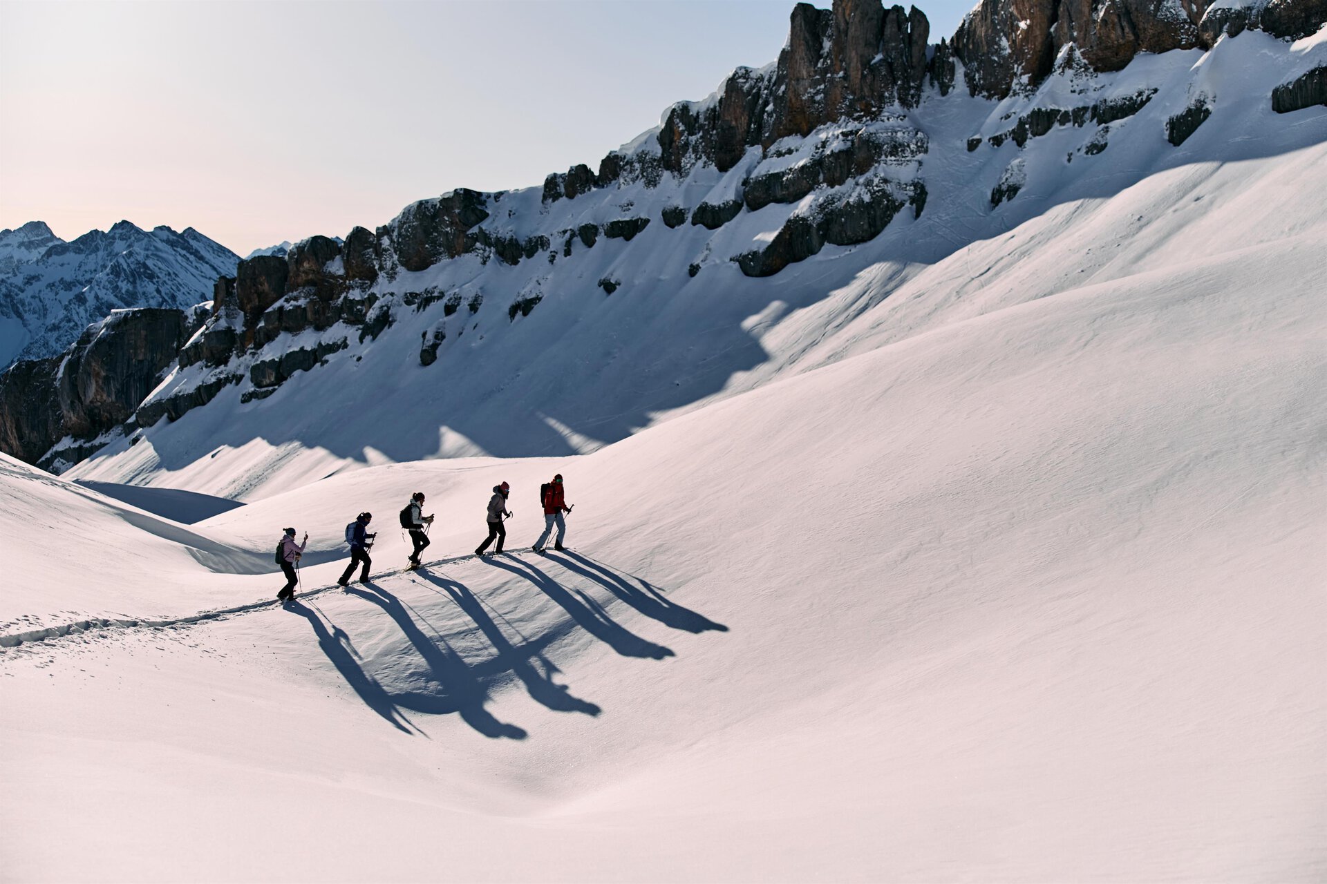 Equipment: Sturdy, ankle-high shoes (mountain boots) or hiking boots, winter clothing and a rucksack with snacks and a drink. Snowshoes and poles as well as avalanche transceivers are provided by the mountain school.