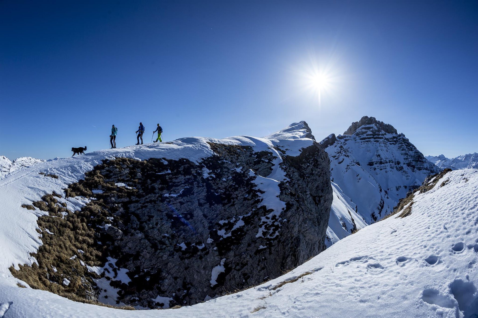 The quickly learned technique of snowshoeing makes this tour a real experience for sporty beginners as well as for continuation. The panorama at Gottesacker is extraordinary and unique. You will experience the magic of winter anew in the area of the Gottesacker plateau. Trapper feeling included! This tour is only possible when visibility is good. During a long rest, everyone can finish their own snack, while we marvel at the panorama.