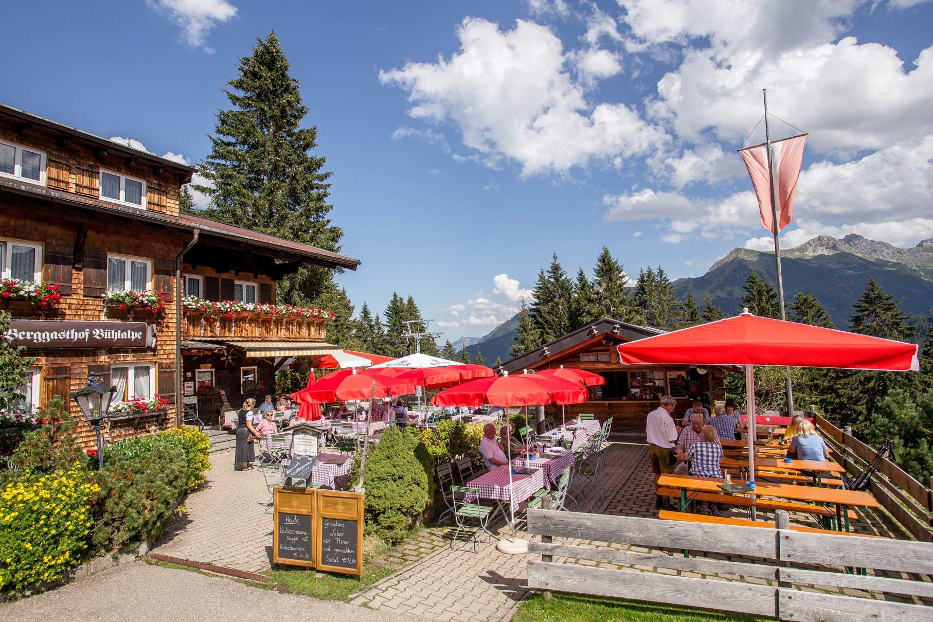 Traditional inn in the Walmendingerhorn area in Mittelberg with a beautiful sun terrace. The Bühlalpe is located at 1,480 m. Specialty of the house is the "Original Kaiserschmarrn." Cozy hut evenings on request.