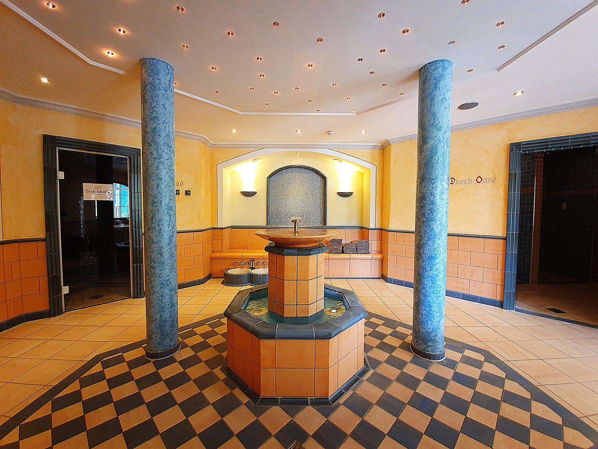 700 m² vitality world with a fantastic mountain backdrop. Swimming pool (10 x 5 m). Finnish sauna, soft sauna, steam bath, Tecaldarium, spacious fitness room. Relaxation rooms and a sun terrace with a fantastic mountain panorama. Day spa € 25.00 per person. Bathrobe rental € 5.00.