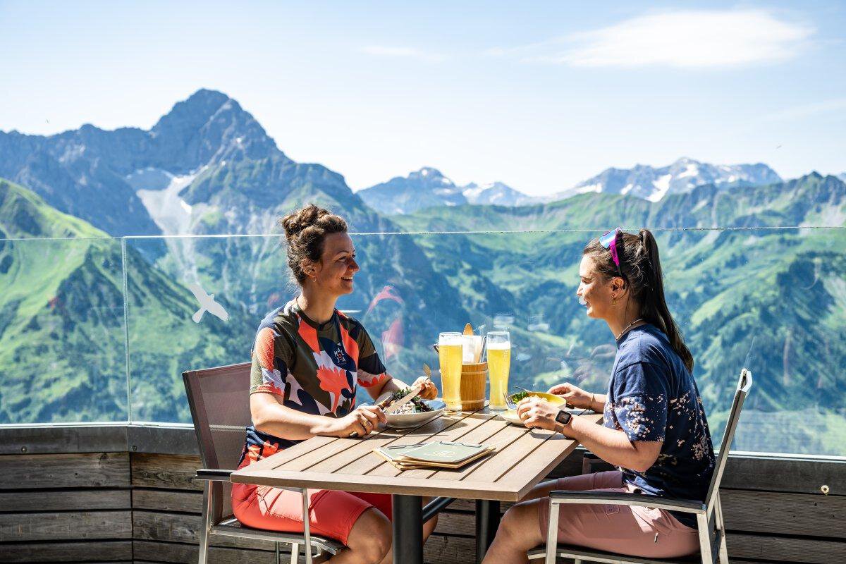 Walser specialties, vegetables and crispy salads and desserts are on the menu of the tastefully furnished restaurant right next to the mountain station of the Walmendingerhornbahn. They can also be served on the large panoramic terrace. Especially convenient access, handicapped accessible elevator!