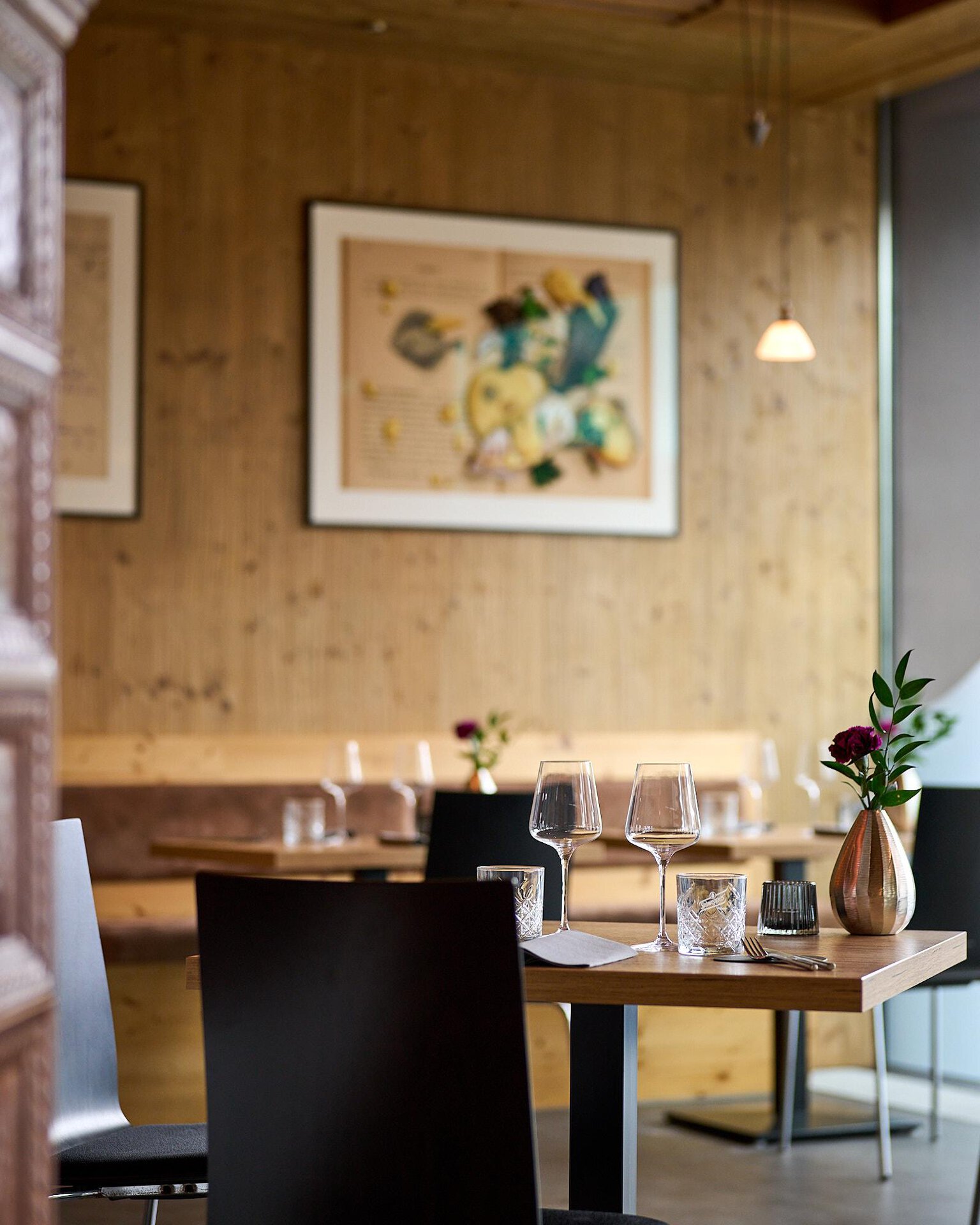 Here, craftsmanship meets an informal atmosphere. The view from the window looks into the valley, and the menu takes you to Paris, Burgundy, or the Rhône. Here, in a consciously relaxed form, but with Sascha's same commitment to quality, precision, and flavor.