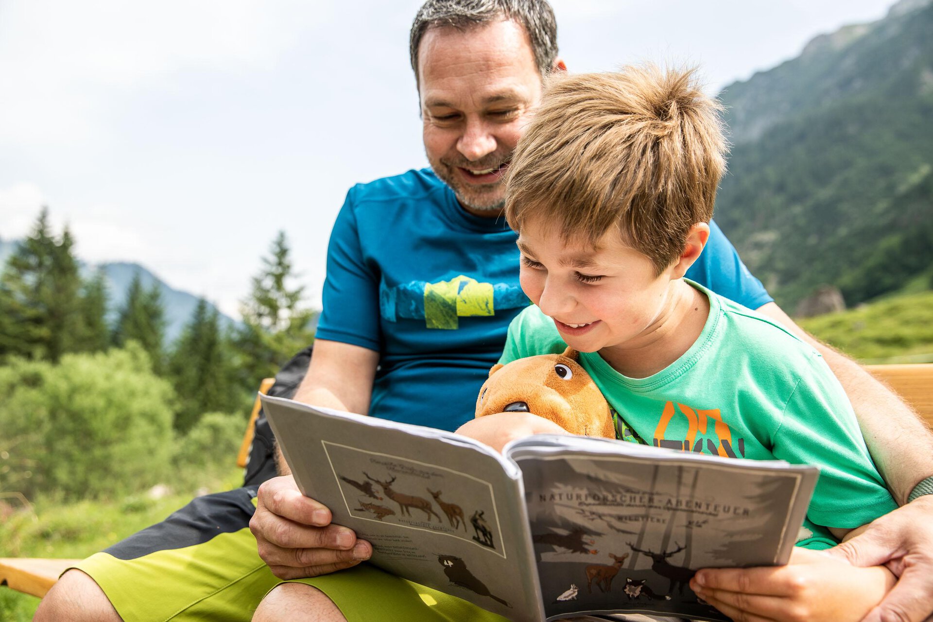 The centerpiece of the experiential hike is the explorer's book with many tricky tasks. It accompanies families on their journey through the Gemsteltal. Info columns have been installed along the way for solving the research tasks. Here, helpful tips are available, and above all, exciting information about the local wildlife can be learned. The Nature Explorer Adventure is complemented by an audio play, which tells the entertaining story of Burmi, Burmina, and their animal neighbors in the Gemsteltal in addition to the book and the info columns. To use the audio play, one installs the Locandy app on a smartphone, which also continuously shows the way to the next research station. Further information and instructions are directly in the explorer's book.